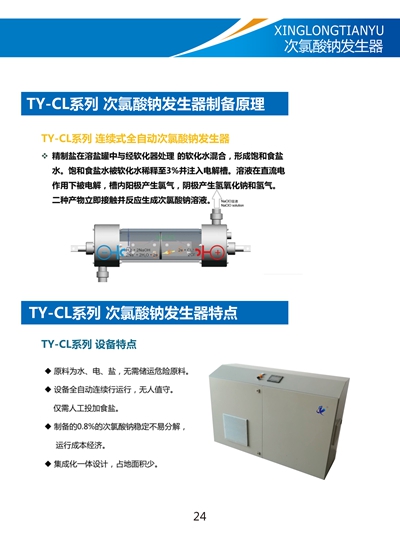 (1)節(jié)能:可在用電低谷制備和儲存次氯酸鈉溶液,不占用高峰用電時段用量,充分利用電能,經(jīng)濟節(jié)能。