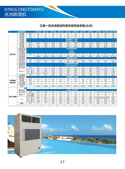 2、室內(nèi)恒溫泳池空間的暖濕空氣經(jīng)由回風(fēng)管道引至設(shè)備的回風(fēng)口,流經(jīng)設(shè)備蒸發(fā)器,使暖通空氣溫度下降,空氣中的水汽降溫凝結(jié)成水滴從空氣中分離出來,實現(xiàn)空氣除濕功能。在暖濕空氣降溫、水汽凝結(jié)(相變)的過程中釋放出的顯熱和潛熱被制冷劑吸收。制冷劑吸收的熱量經(jīng)池水冷凝器加熱池水,實現(xiàn)池水加熱功能;經(jīng)空氣再熱冷凝器加熱冷卻的空氣,實現(xiàn)空氣再熱功能;經(jīng)室外風(fēng)冷冷凝器或水冷冷凝器將熱量出,實現(xiàn)空調(diào)制冷功能。